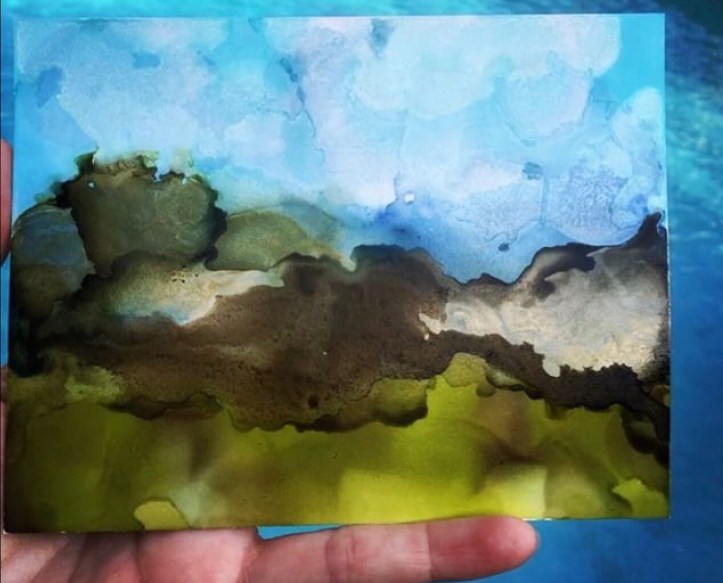 So recently I’ve discovered Alcohol Inks and I’ve had so much fun experimenting with them. I played around with a mountain scene and a dragonfly and thought, wouldn’t this be cool to use with quilling?