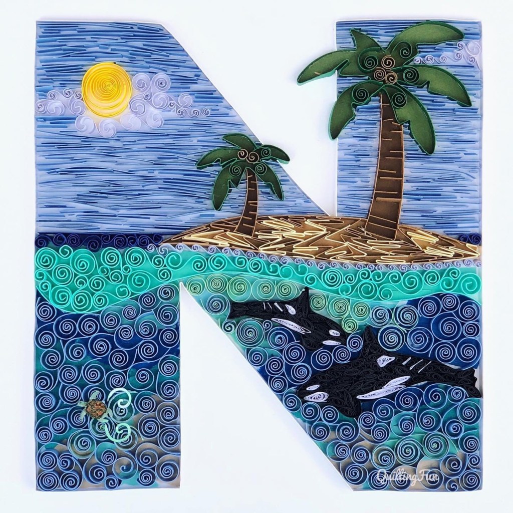 I had a request for a letter N with my ocean theme, however this time they wanted it where you could see whales and a turtle in the ocean depths. I love a good challenge!